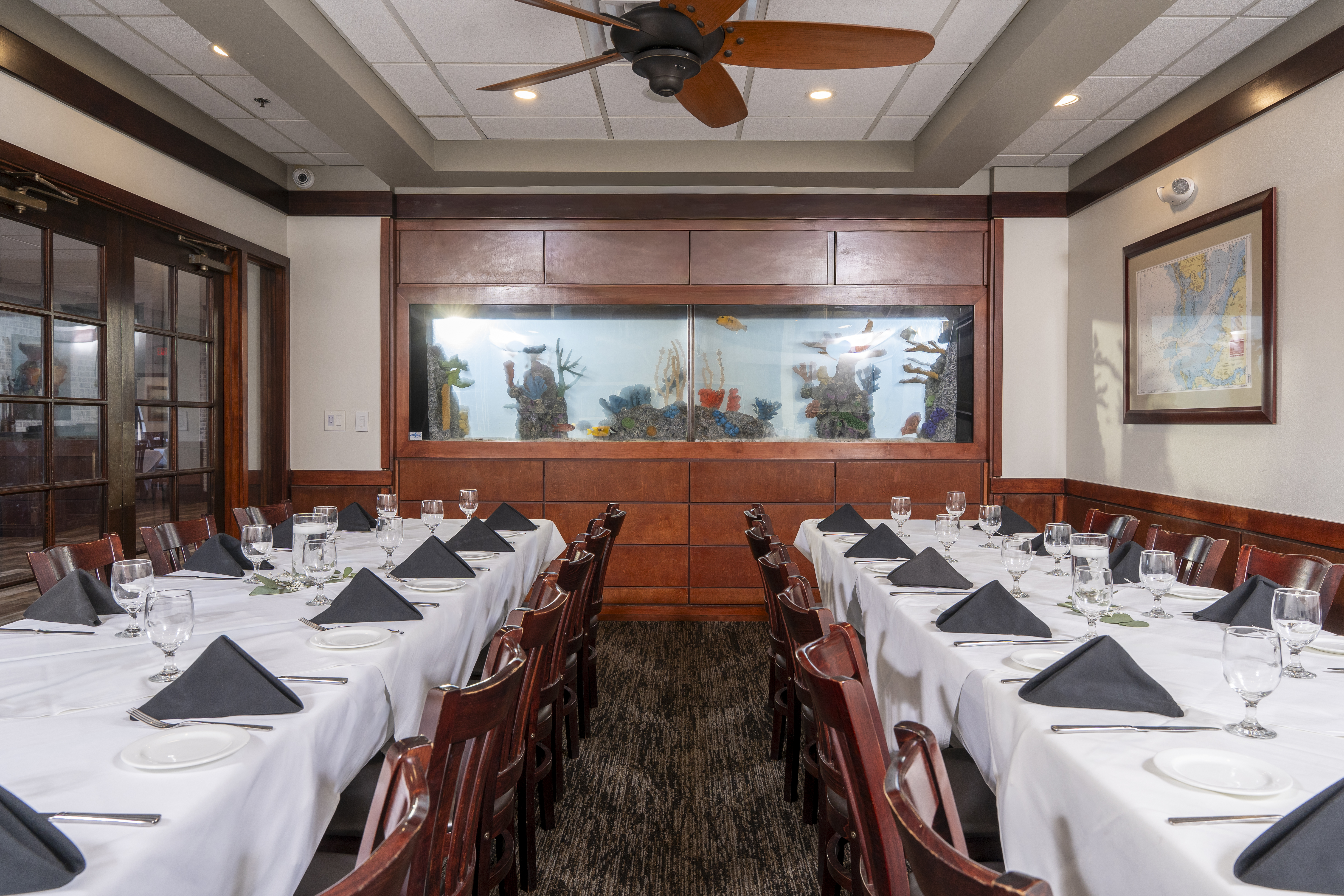 A bright waterfront space with floor-to-ceiling views. Ideal for celebrations, business lunches, and intimate gatherings.
